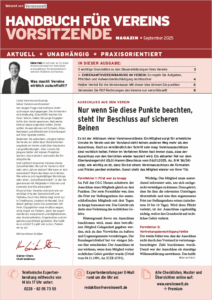 IN DIESER AUSGABE:5 wichtige Grundsätze zu den Steuererklärungen Ihres Vereins➤ EHRENAMTSVEREINBARUNG IM VEREIN: So regeln Sie Aufgaben,Pflichten und Aufwandsentschädigung rechtssicherHeißer Herbst für die Vereinskasse: Mit dieser Idee können Sie punktenVersenden […]